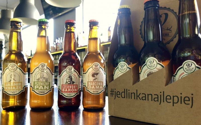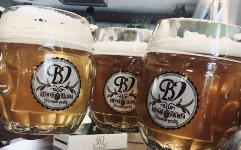 JASNY LAGER - Marcowa Dama, PIWO PSZENICZNE- Pszeniczny Pan oraz DUNKEL- Czerwony Baron, pozostałe gatunki takie jak np. IPA- Podchmielony Lord, są produkowane sezonowo. W Jedlince piwo warzymy według bawarskiego prawa czystości i bazujemy na tradycyjnych niemieckich recepturach Browarnictwa. W 2020 roku Browar Jedlinka uzyskał certyfikację Uniwersytetu technicznego w Monachium na prowadzenie praktyk dla studentów Browarnictwa z Niemiec. Jesteśmy na ten moment jedynym Browarem w Polsce, który uzyskał taki status. W 2020r. udało nam się zdobyć srebrny medal w konkursie GOOD BEER za Czerwonego Barona w konkurencji ciemny lager oraz brązowy medal w tym samym konkursie za Pszenicznego Pana. Nasze piwo można kupić tylko i wyłącznie na miejscu w butelkach 0,33L lub beczkach 5L.