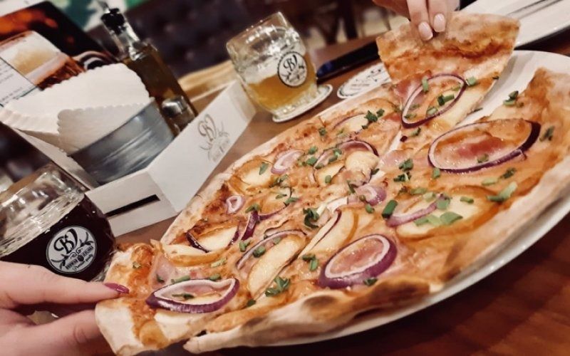 Pizza z pieca opalanego drewnem i piwo rzemieślnicze.